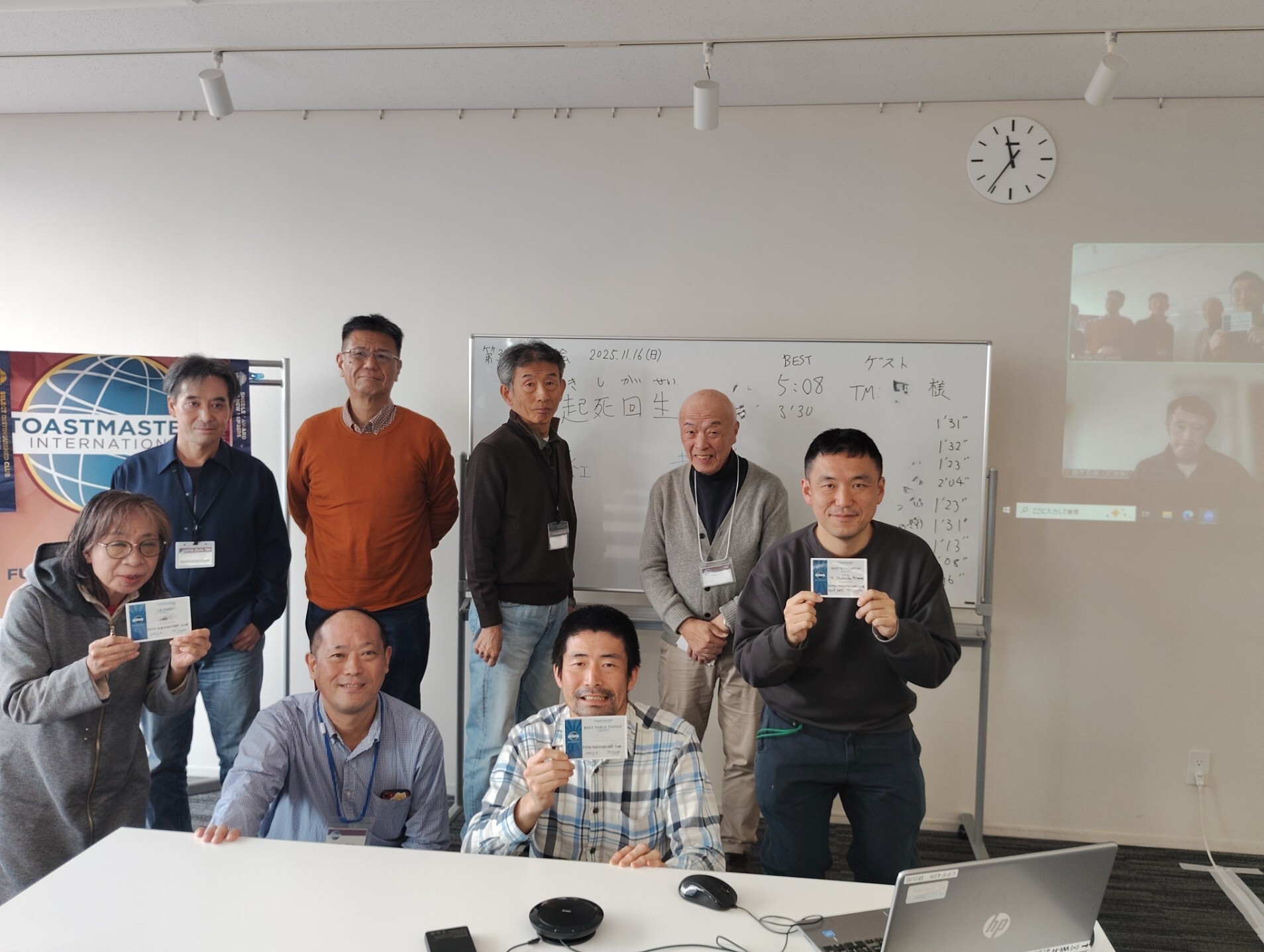 例会の最初に、メンバーの1人が「今日の言葉」を発表します。 話し手はスピーチの中で、「今日の言葉」を努力して使うことで実践的な語彙力アップを図ります。今日の言葉は「起死回生」でした。アメリカプロ野球メジャーリ―グの優勝を決める試合の説明を交えて、Nさんが発表してくれました。難しすぎず簡単すぎず、とてもよい言葉のチョイスをしてくれました。